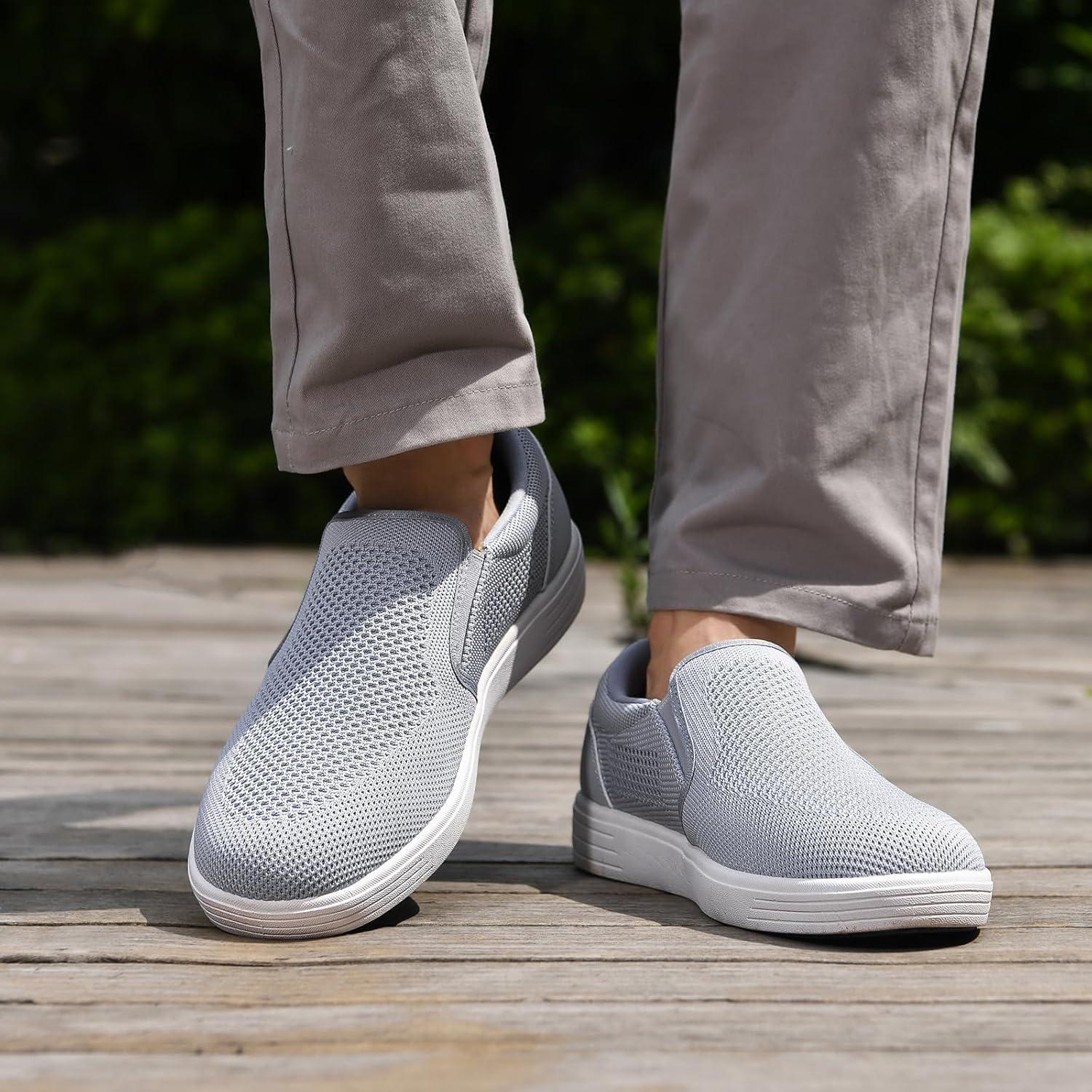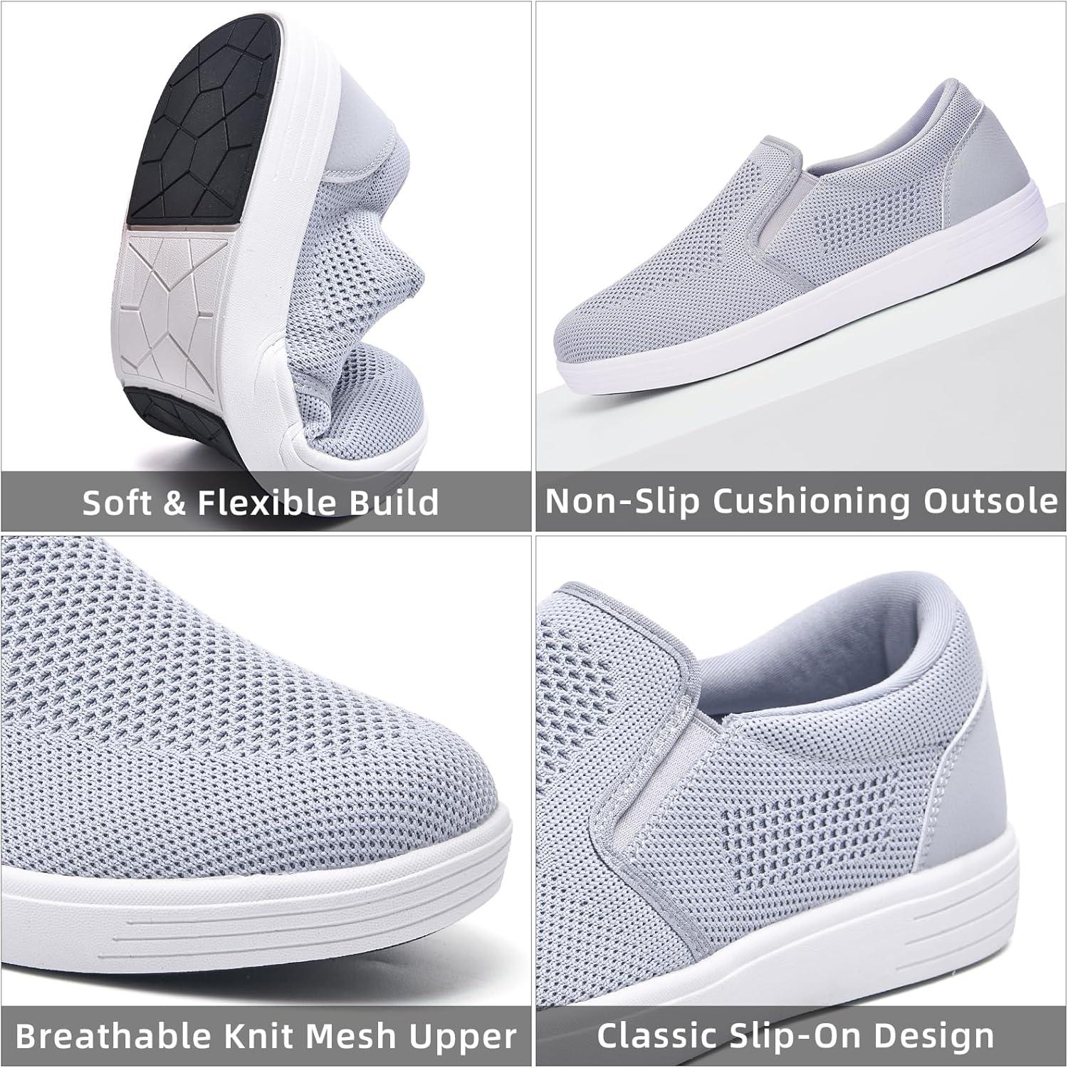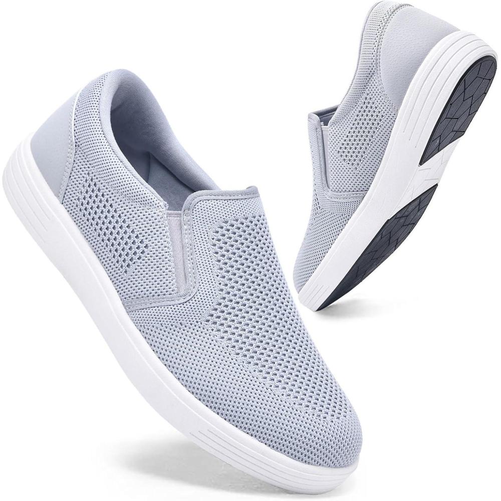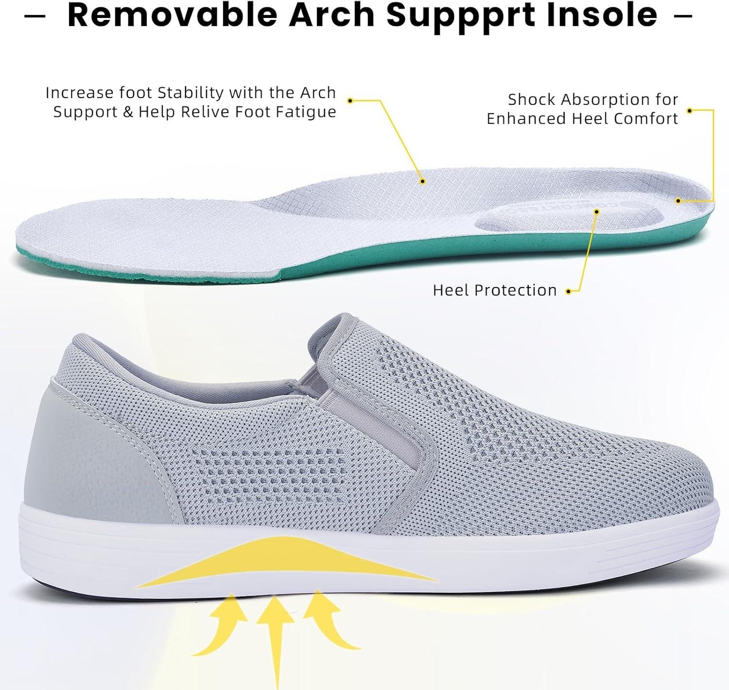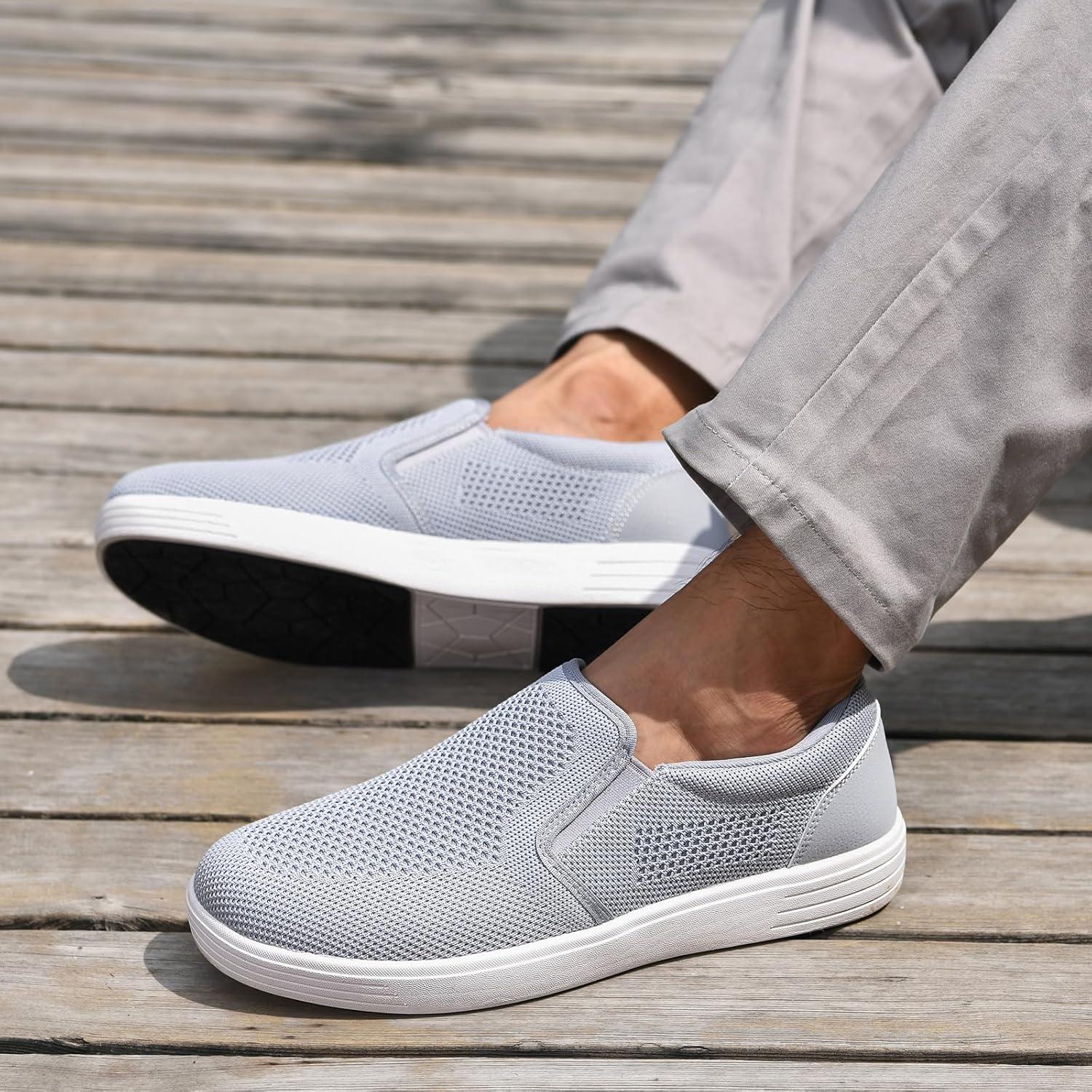 konhill Men's Slip on Shoes - Casual Arch Support Walking Loafers Slip-on Mesh Knit Sneakers Memory Foam Driving Work Skate Shoes Slip Resistant Shoes(Grey)