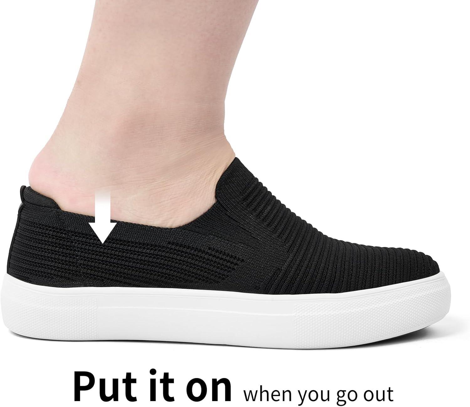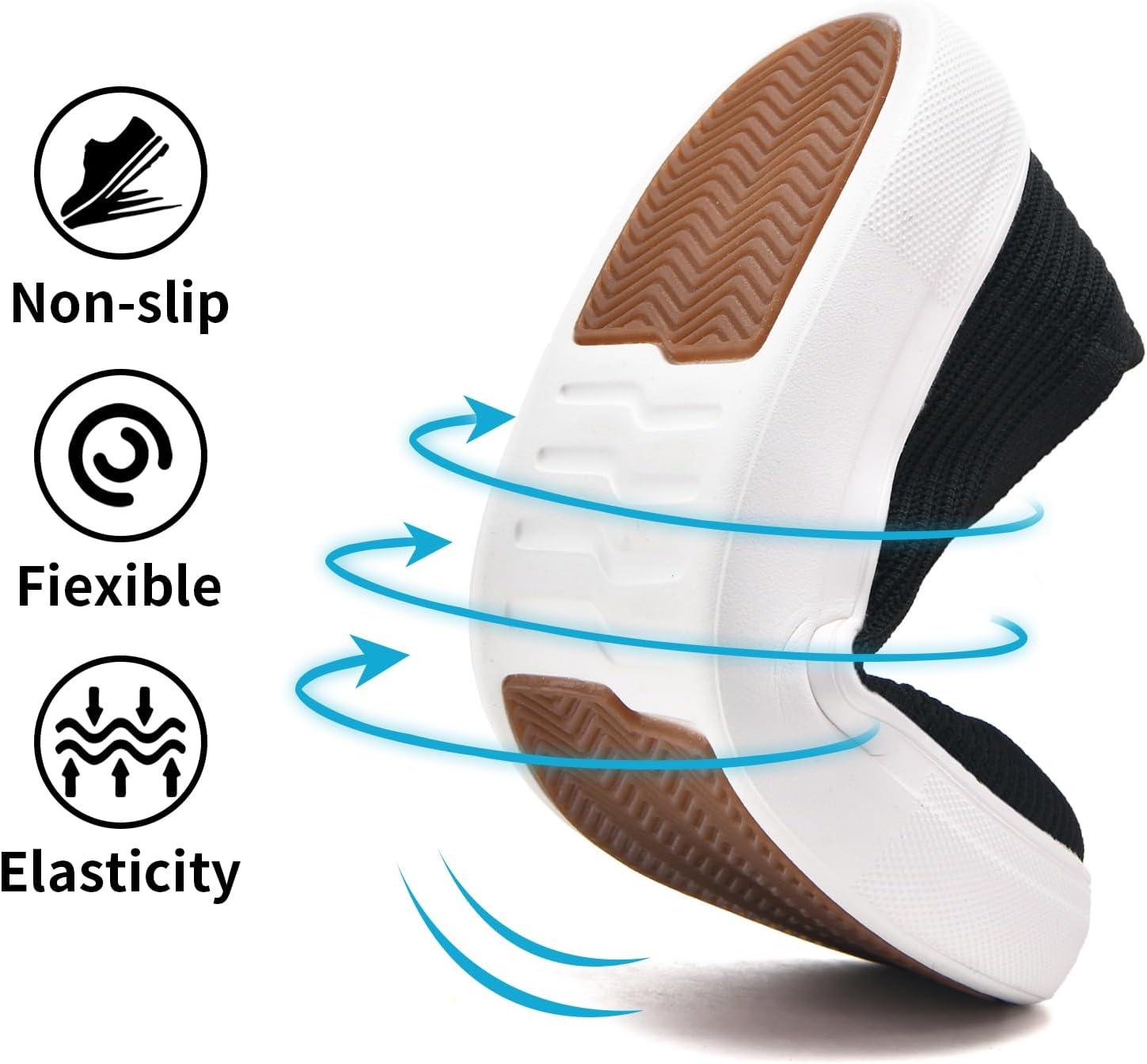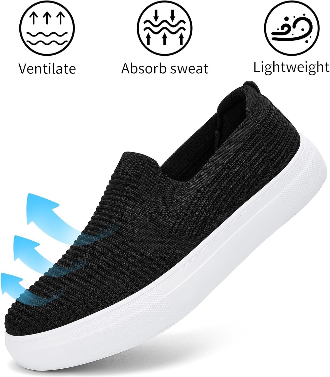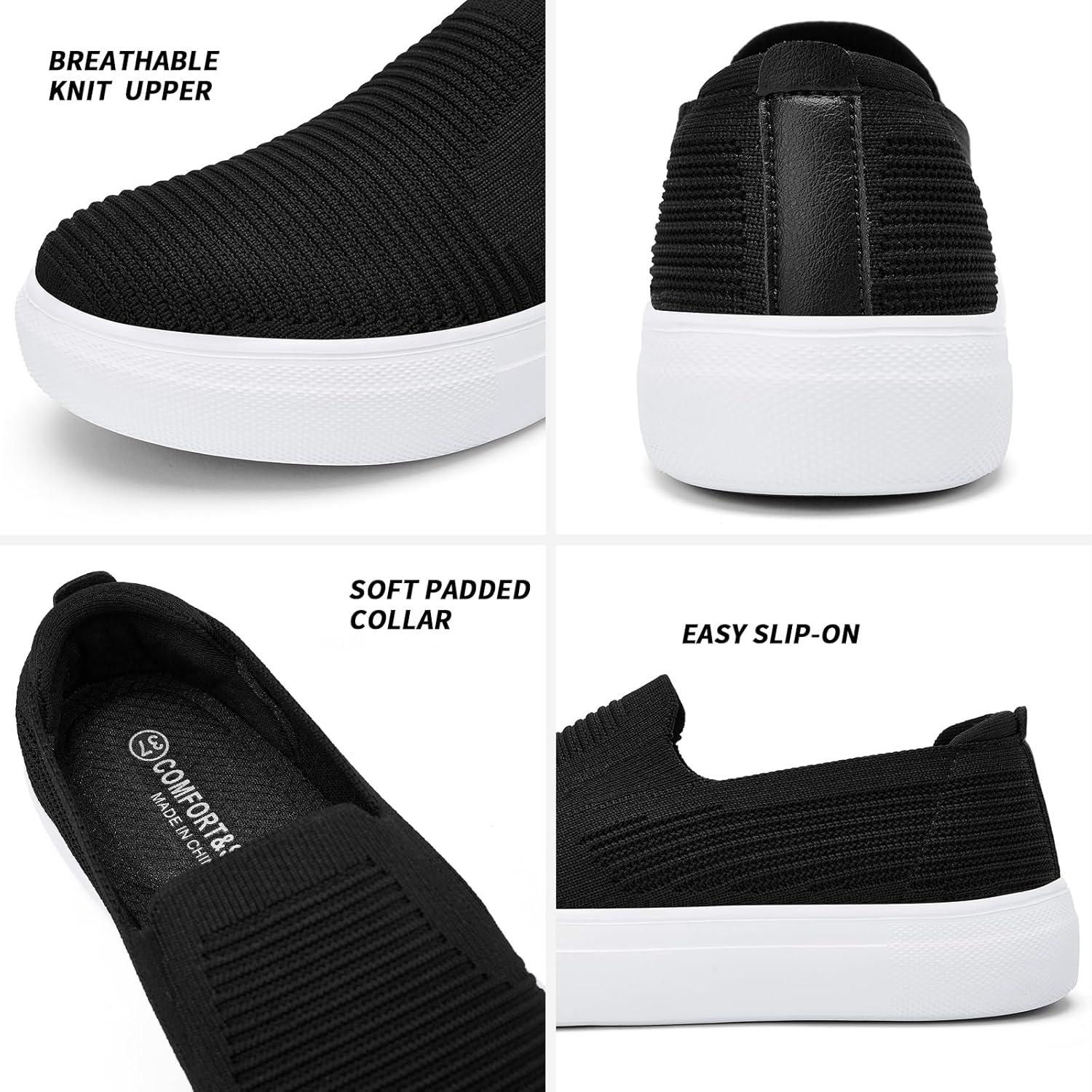 konhill Women's Slip Ons Loafer Casual Walking Shoes Breathable Comfortable Fashion Sneakers for Work Nurse Travel Black Size 6.5